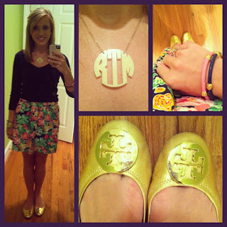 Moon & Lola Monogram Necklace // Gold Metallic Revas // Lilly Pulitzer Mimosa Skirt // Lilly Pulitzer Tee (similar)