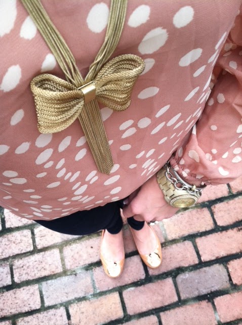 Madewell Bow Necklace // Yurman // Michael Kors Watch // Polka Dot Top // Tory Burch Quinn Flats