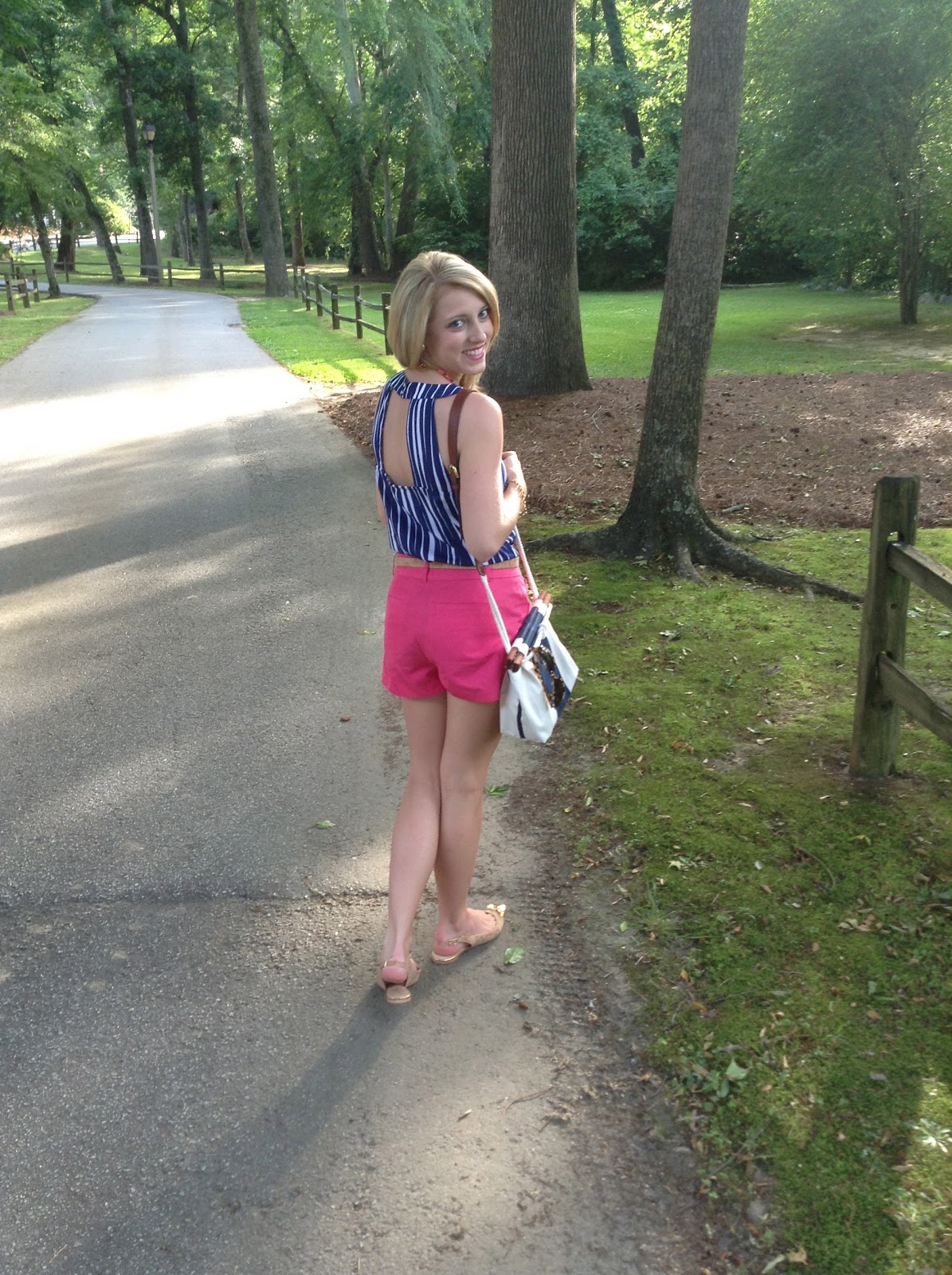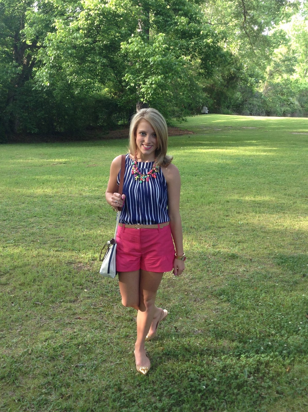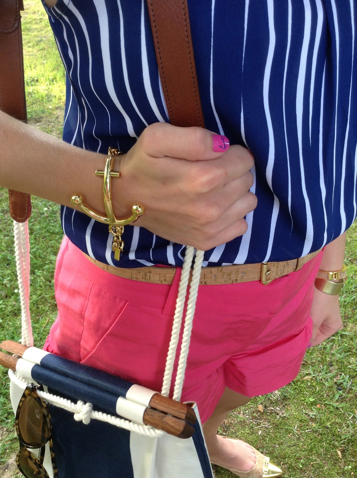 As I mentioned in my last post on “Reflecting Your Personality” through your outfits, a pink and navy combination is one of my ways to express myself through what I wear. As soon as I got off work today, I picked up Jaycee from the groomer and headed to get a manicure. What do you think I chose? If you’re thinking pink and navy, then you’re correct. I chose hot pink with a navy anchor design. This also went along with my outfit. This outfit had me feeling happy which is my main goal through what I choose to wear. The shorts are something else I want to mention, but I’ll save them for another time.