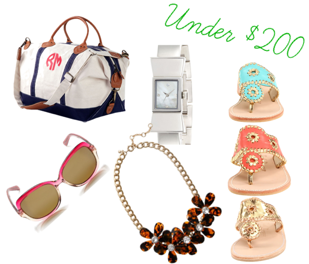 A monogrammed duffle bag will be perfect for all of her summer travels! / As Kate Spade says, “Put A Bow on it!” Watches make the perfect gift, but the Kate Spade Bow watch is even more perfect! / A fun pair of Kate Spade sunnies will also be a nice summer surprise for Mom. / This J.Crew Tortoise statement necklace will surely put a smile on her face. / A fresh pair of Jacks would be the perfect surprise.