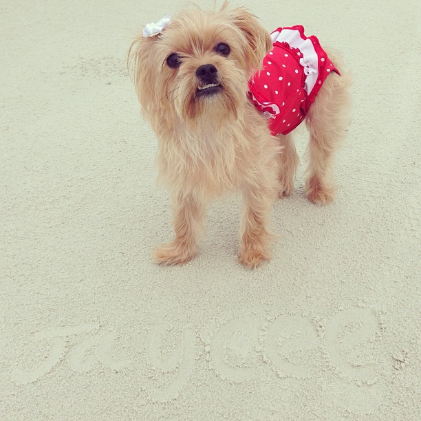 Oh my gosh, I just checked out your blog for the first time and the first thing I see is this adorable dog… she is so cute. I love her outfit and little bow