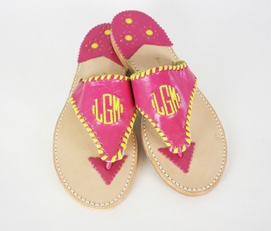 I ams oh-so-badly wanting a pair of monogrammed sandals from Personalized From Me To You. I would choose a navy sandal with my monogram and the piping in beige.