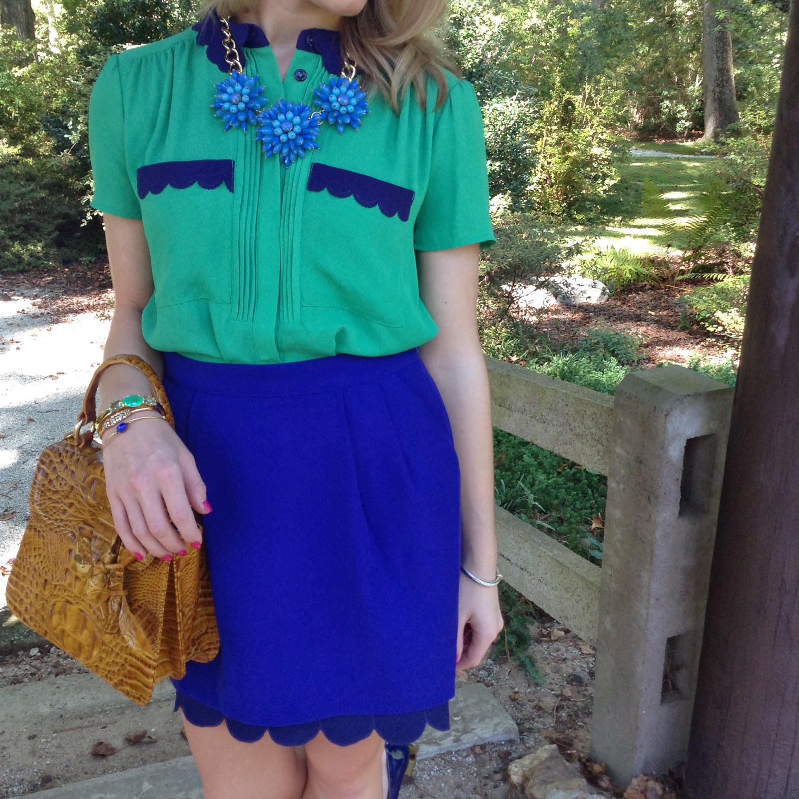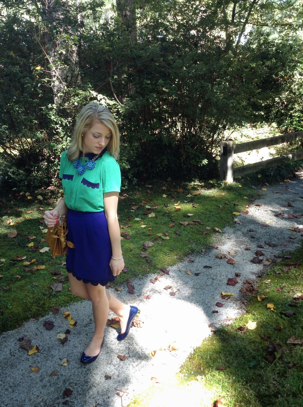 I love this entire look, the scallops go so well together and that necklace really brings the whole outfit together!