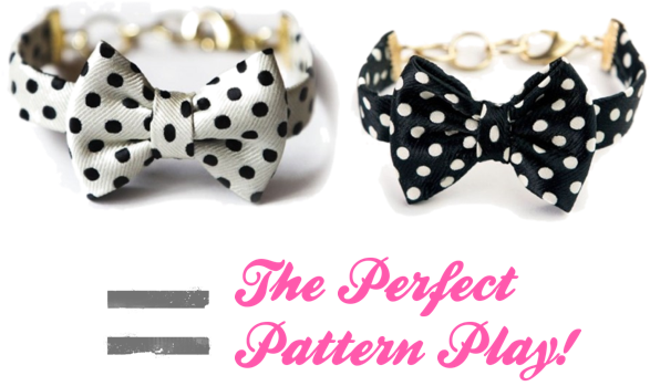 Today, I want to share a few ideas on pattern play. I absolutely love to do this with my outfits. In fact, the outfit I’m wearing today inspired me to write this post. I think pattern play is a great way to keep the outfit from being boring. Polka dots, being a basic print, are a great way to start off the outfit…a polka dot button down (my black & white polka dot button down is my very favorite)! Then I like to choose a bright colored sweater to add some color. After that, I decide on another pattern for the shoes. I love to pair my black and white houndstooth (pictured below) flats with it. Then, add an accessory, such as the Vickers bows, to tie in one of the patterns. See it all below!