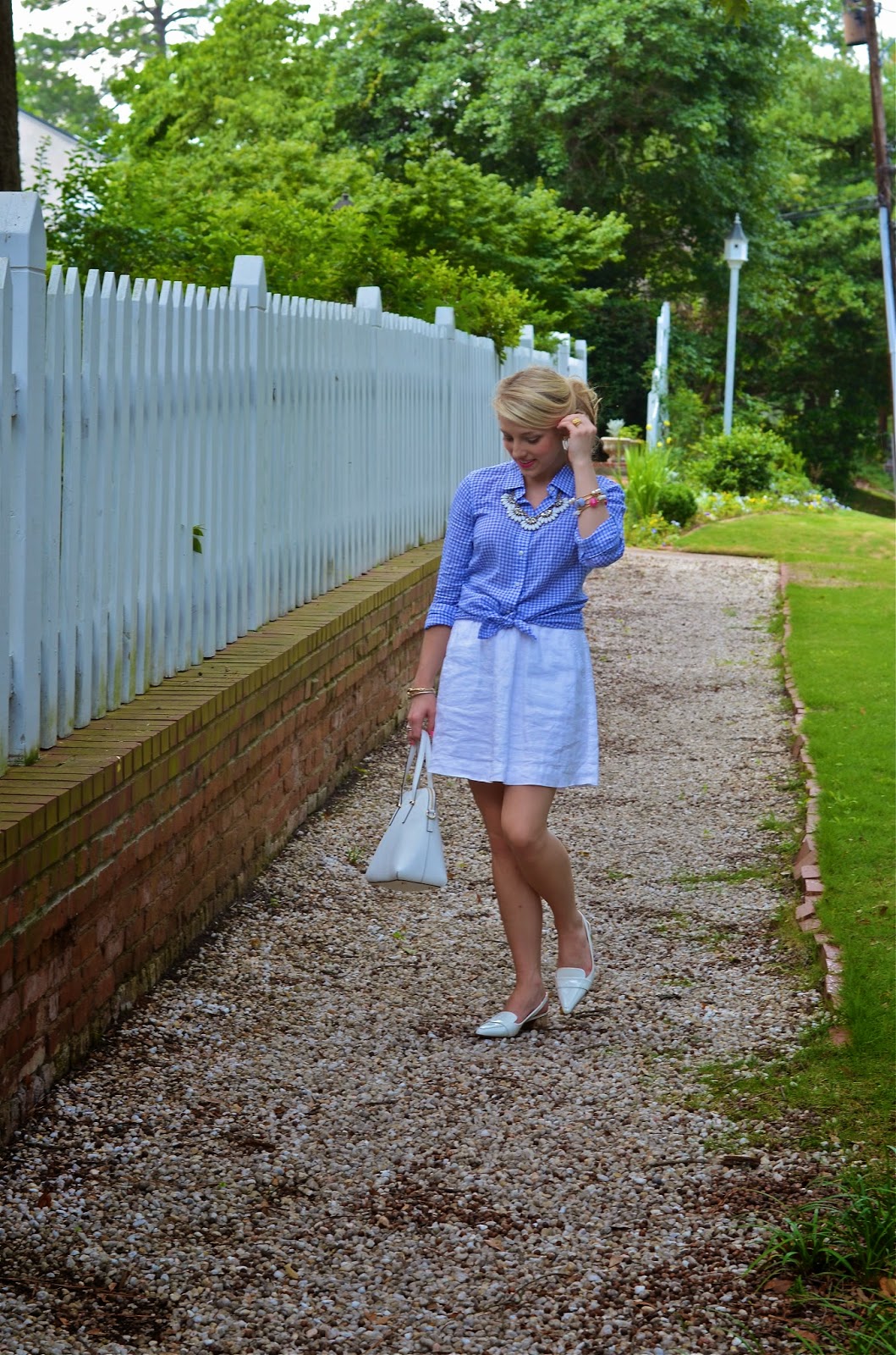 Love your outfit! The way you styled your gingham shirt is adorable! 🙂