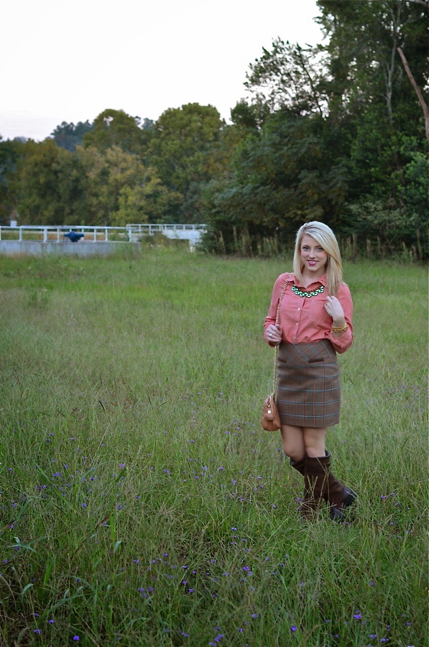 Skirt: Dubarry of Ireland ℅, Boots: Dubarry of Ireland ℅, Necklace: J.Crew, Bag: Tory Burch (similar)