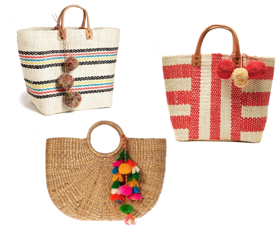so cute! I love the navy striped one with the pom poms! it would be perfect for the beach this summer. 🙂
