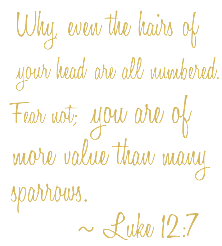 Take Luke 12:7 and Matthew 10:29-31, for example, God knows every little detail about you…even the number of hairs on your head. Wow…that’s huge! And isn’t it a comfort to know that if God cares about such a tiny bird (the sparrow) imagine how much He cares for you and me. I also think about Psalm 139:17-18. God’s thoughts would outnumber the grains of sand. Imagine when you’re at the beach and looking at the sand all around you…that’s just part of the sand in all the world, and God’s thoughts would outnumber all of that. Another verse I think of is Matthew 17:20. Think about how teeny tiny a mustard seed is. If it is cared for correctly, it will grow into a tree. Faith is the same way. It starts off small and when nurtured each day (spending time with God), it can grow into something much larger than ever imagined. Lastly, I think of Jeremiah 1:5. Before God ever formed us in our mother’s womb, He knew us. Think of how small yet how amazing that is.