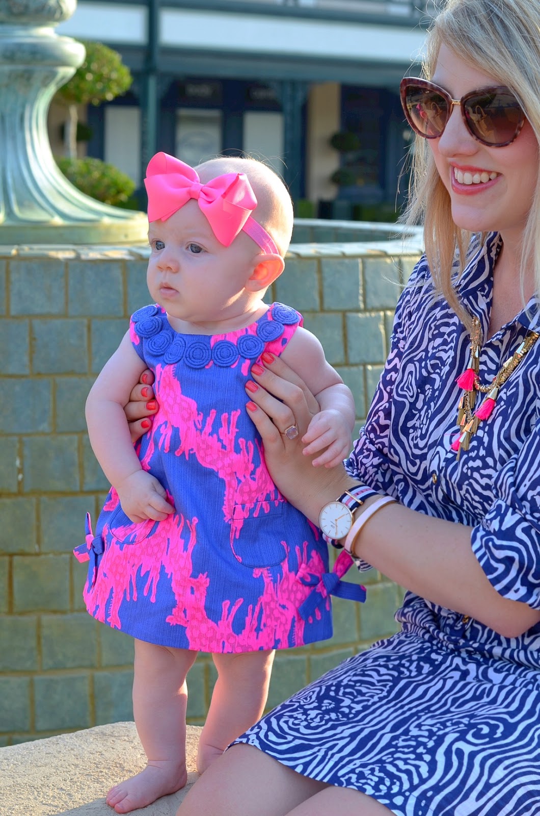 Happy Monday, Y’all! I hope this post brightens your day a little bit. I’m super excited to be sharing it, because this is Madeline’s first Lilly shift dress! She looks so darling in it that I could just eat her up! It arrived on Thursday as a huge surprise from her Aunt Jaclyn. Jaclyn recently moved to Chattanooga to start a job (and got engaged!!), and although we are so happy and excited for her, we have been missing her greatly. She sent Madeline her first baby Lilly shift, and what a special surprise it was. I guess we could say that she’s officially a Lilly girl 🙂