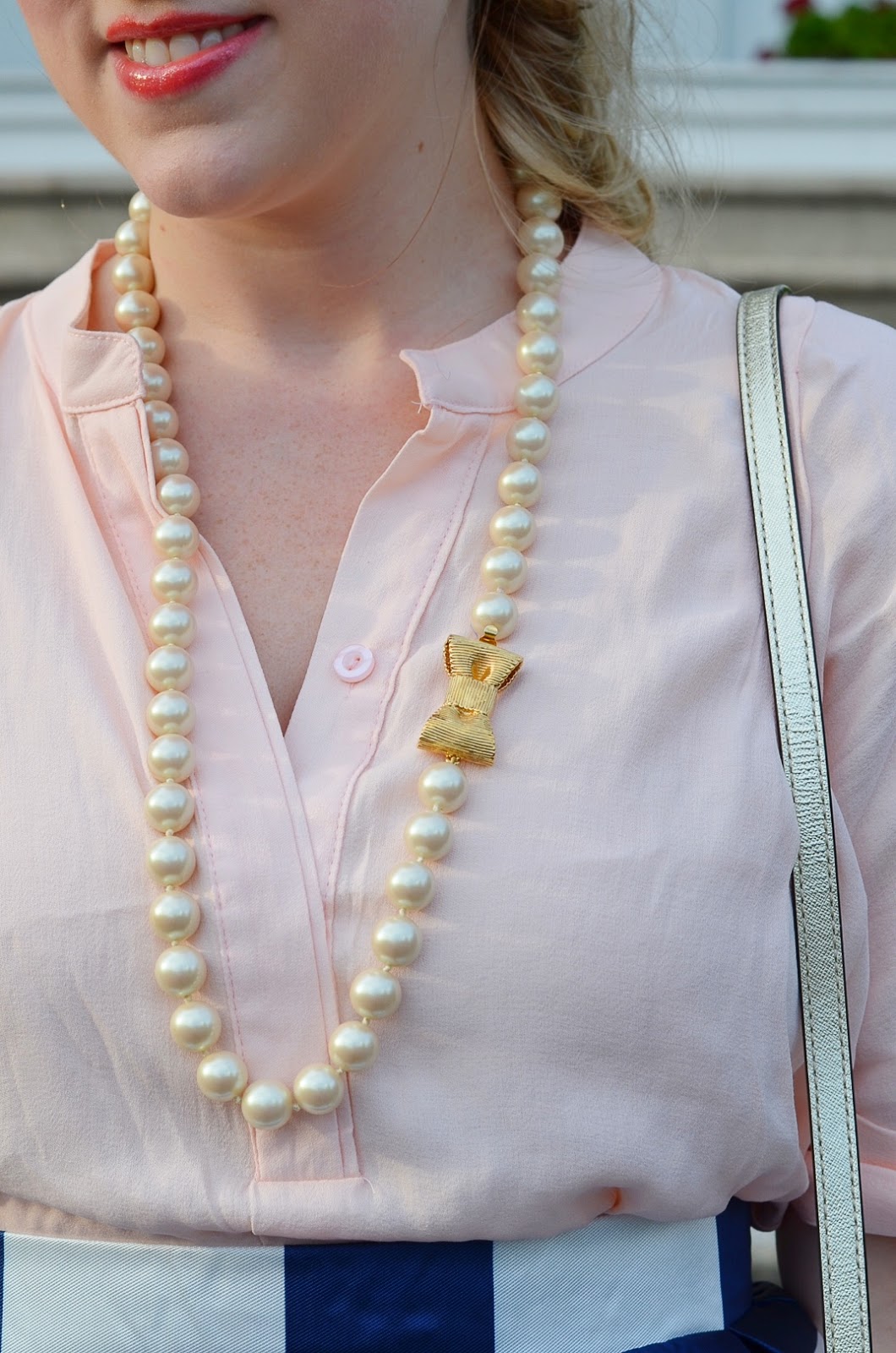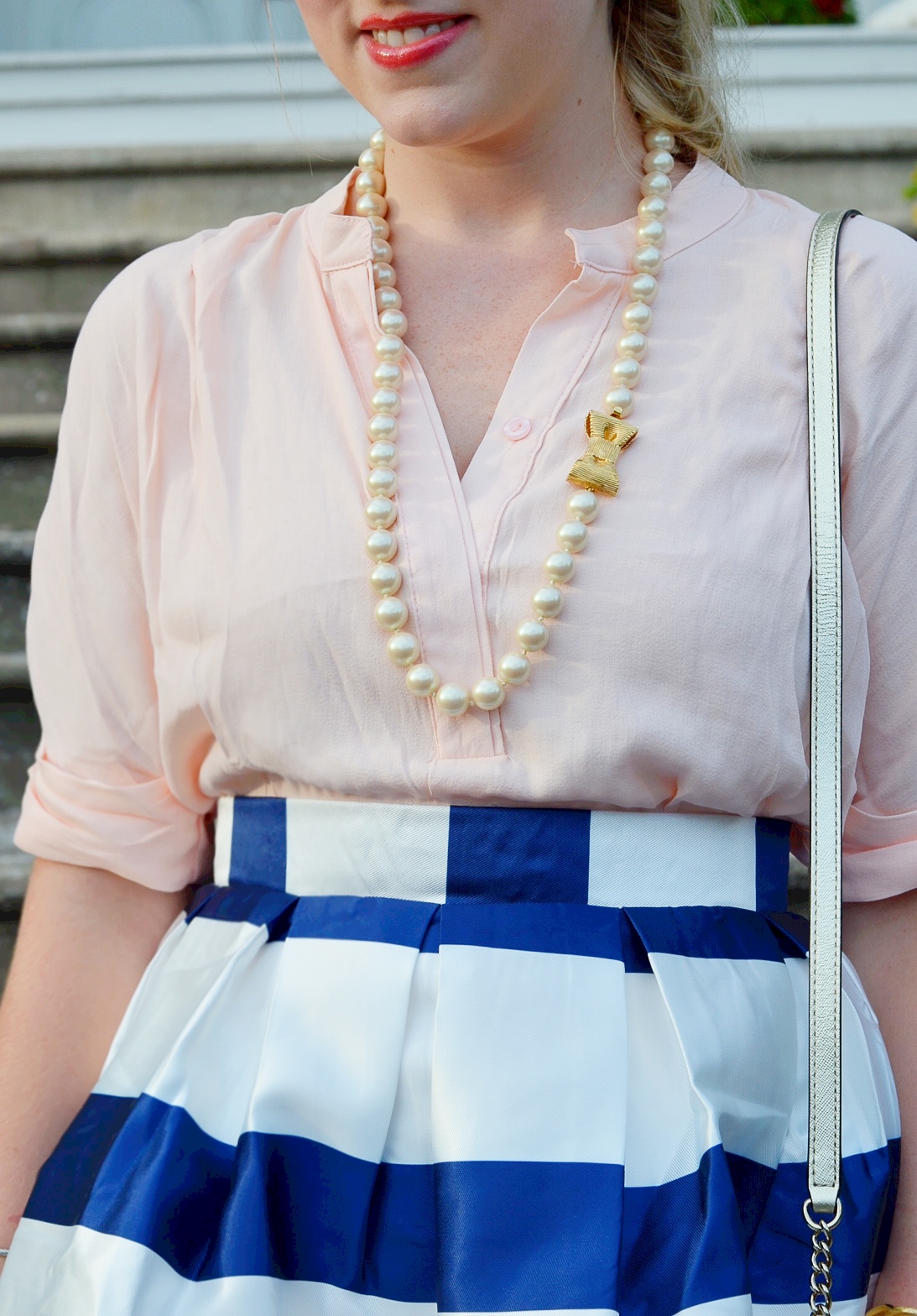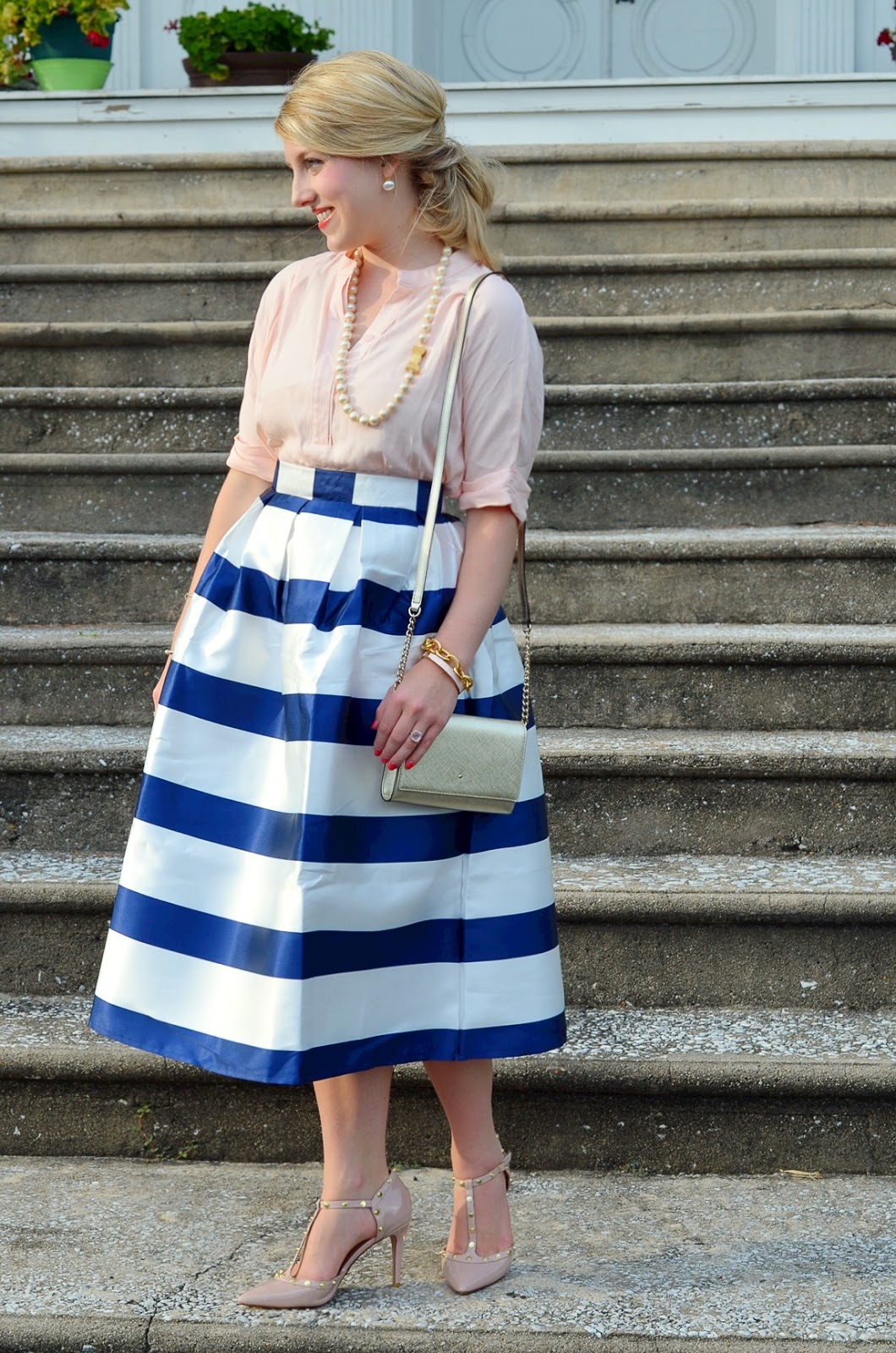 You look stunning! This would be a great skirt to wear to a nice dinner out or a summer wedding! I love the blush paired with the navy!