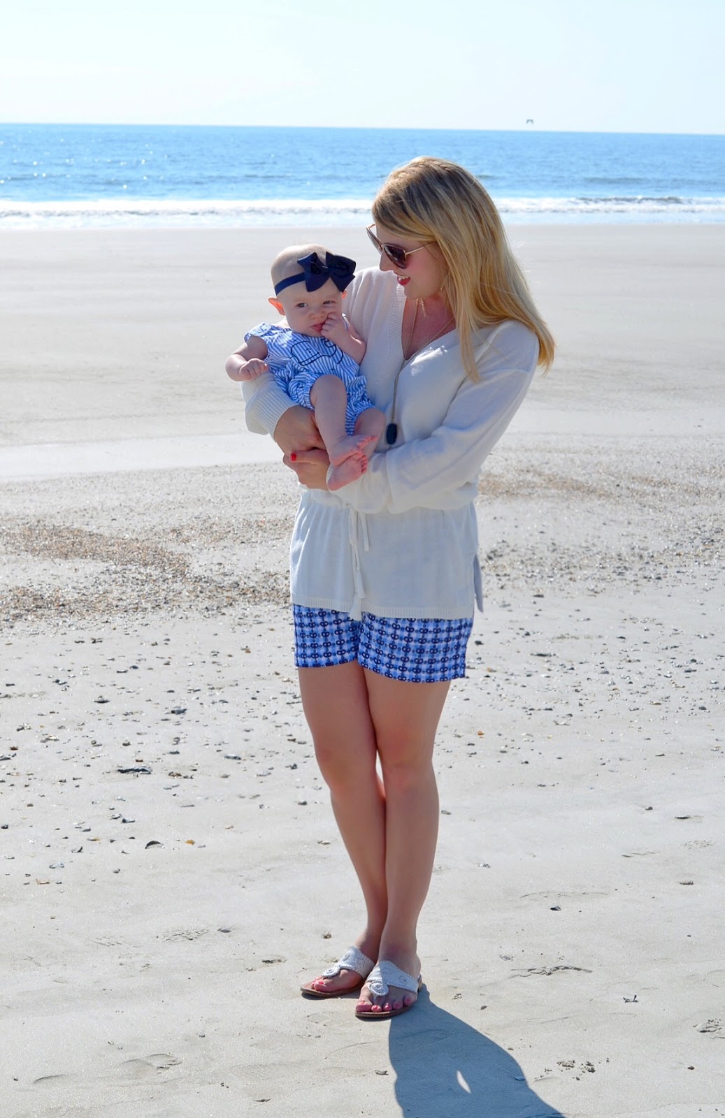 Sweater: Vineyard Vines C/O // Shorts: Vineyard Vines C/O // Necklace: Kendra Scott // Sandals: Jack Rogers // Sunnies: Kate Spade // Madeline’s Outfit: Vineyard Vines C/O // Madeline’s Bow: Etsy