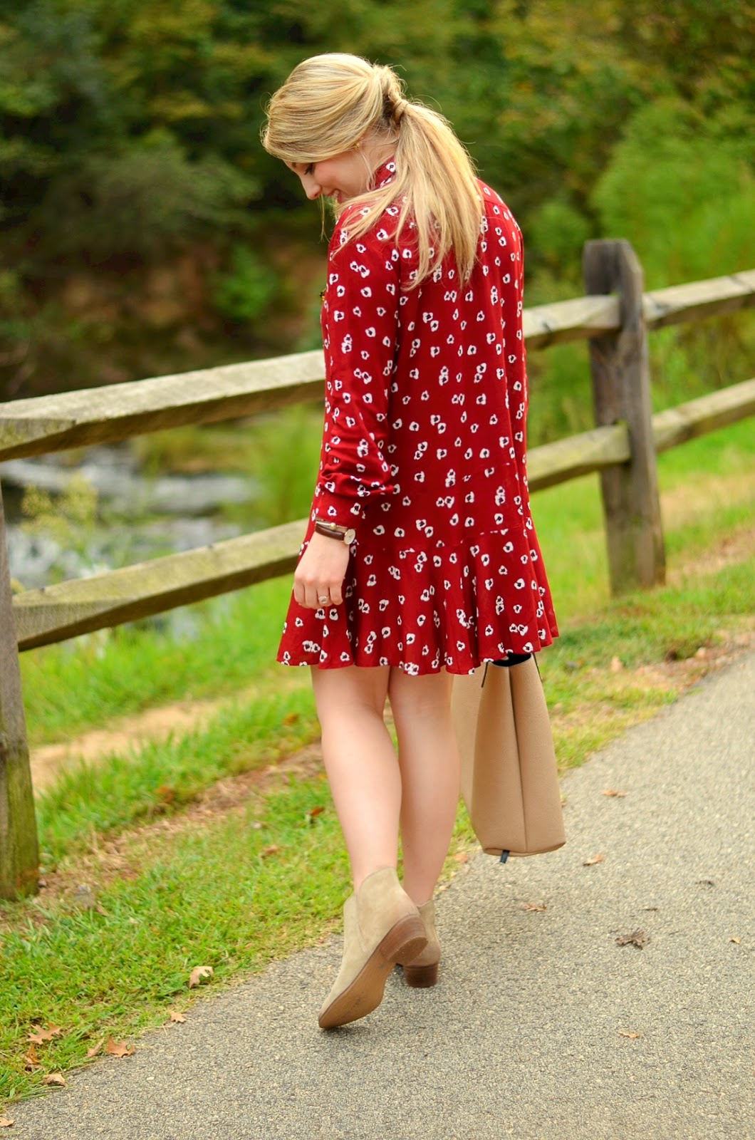 Dress: Anthropologie // Booties: Splendid // Necklaces: J.Crew (25% off with code TIMETOSHOP), Zappos, Etsy // Bracelet: Kiel James Patrick // Bag: Nordstrom