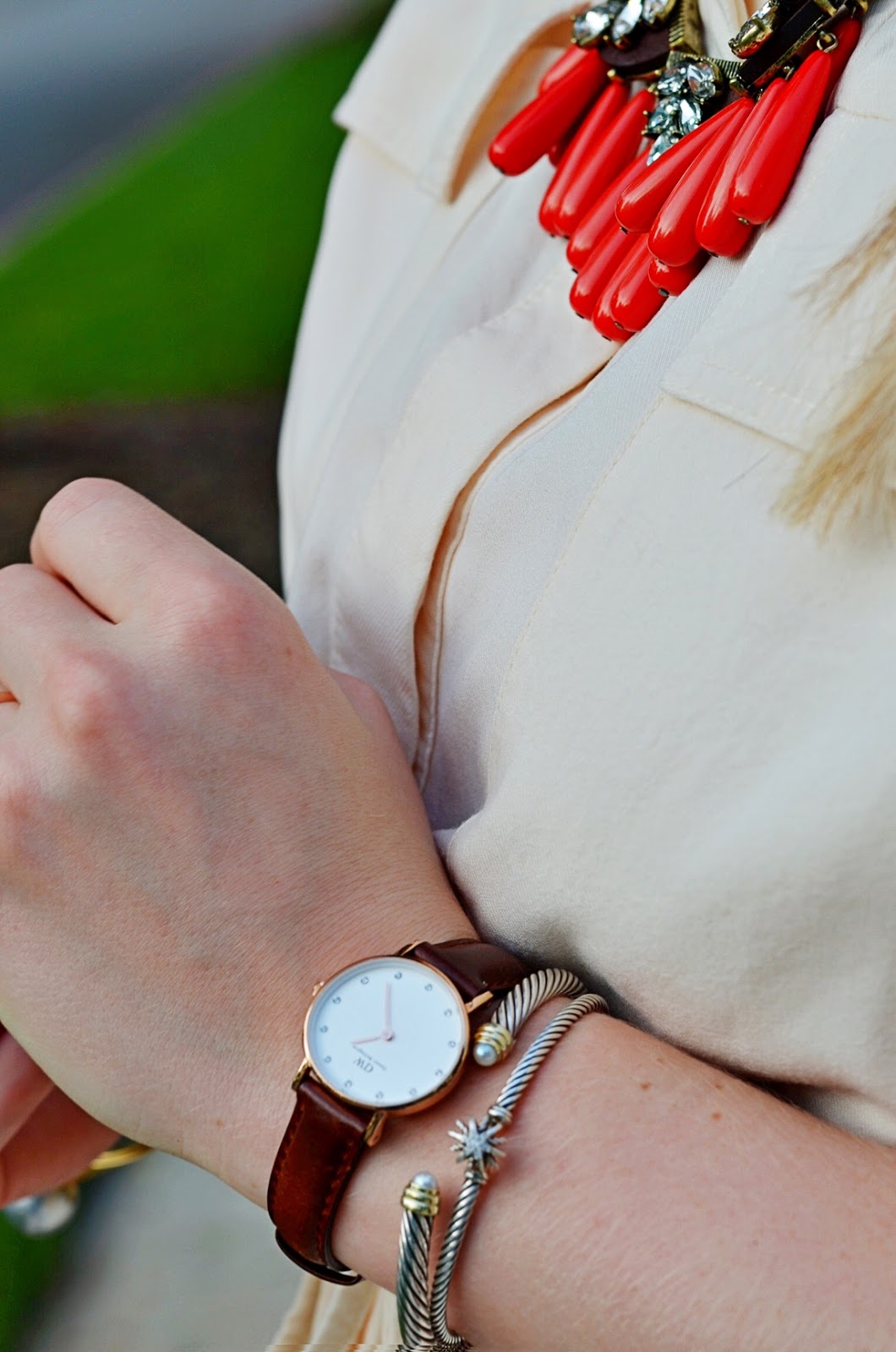 Dress: Topshop // Necklace: Baublebar // Shoes: J.Crew (30% off this weekend with code “GETSHOPPING) // Watch: Daniel Wellington ℅ (15% off with code “SOMETHINGDELIGHTFUL”) // Bag: Tory Burch // Bracelets: David Yurman (1 / 2) // Madeline’s Outfit: Zulily // Madeline’s Bow: Free Babes (color: paprika)