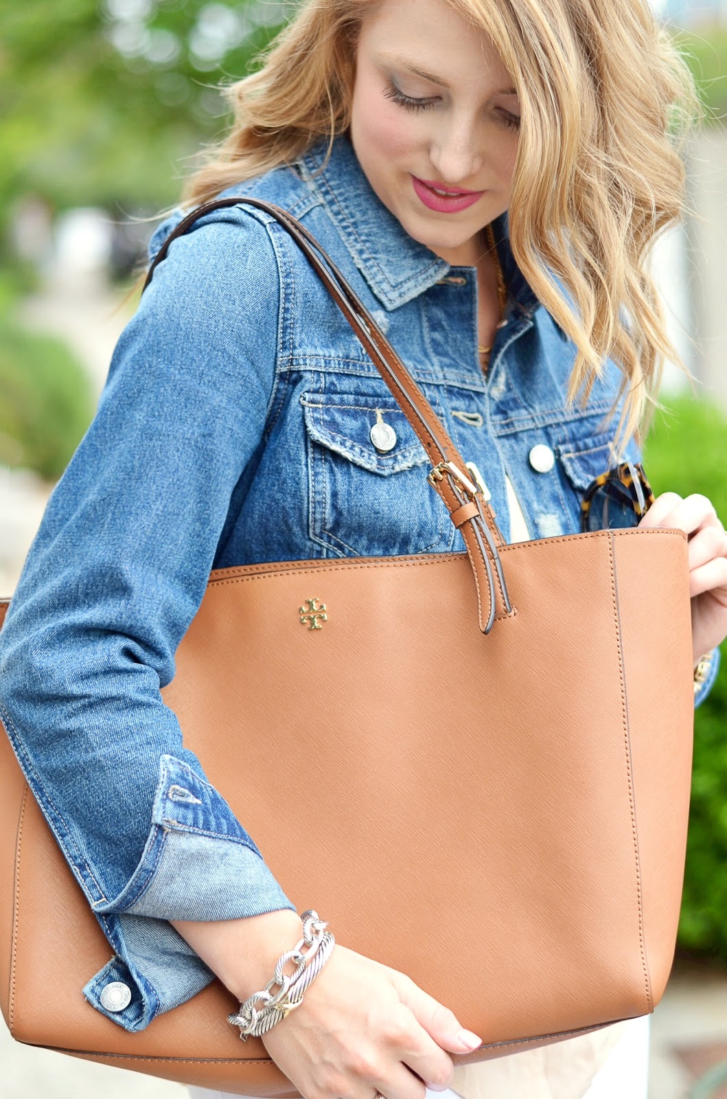 Denim Jacket (under $100) // Top // White Jeans // Sandals (love these!!) // Tory Burch York Tote (currently up to 30% off with code BLOOM) // Necklace (similar) // Sunnies // Bracelet Set
