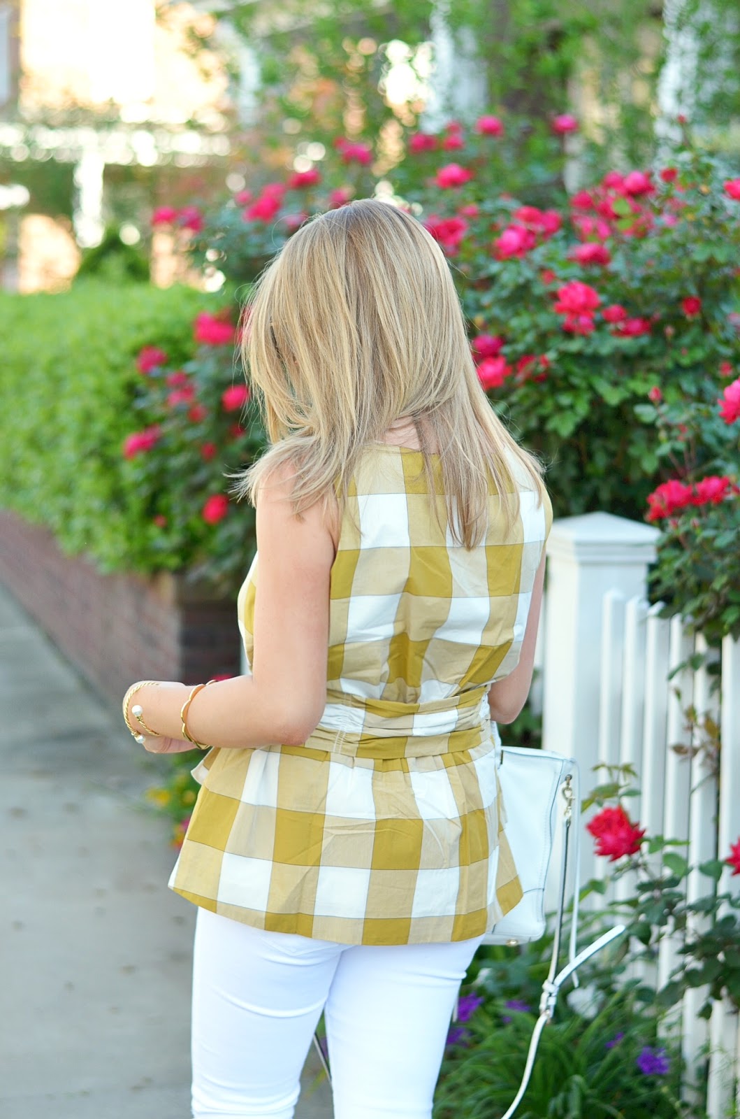 Gingham Top (50% off through tonight with code CYBER50!) // Denim // Sunnies (Obsessed!) // Necklace (similar) // Shoes // Bag // Madeline’s Romper (size up one size) // Madeline’s Shoes // Madeline’s Bow