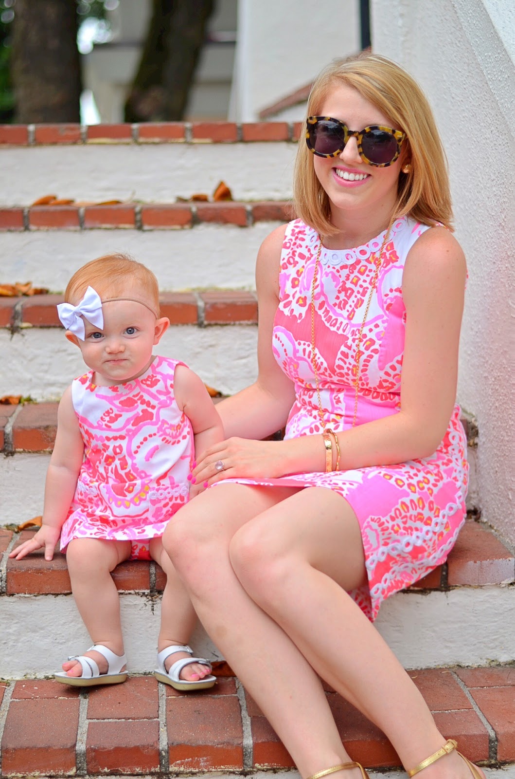Lastly, I just wanted to share a little story. I was going through some boxes just the other night and came across a bunch of my old Lilly shift dresses from when I was a little girl. This is the first time I have seen these since having Madeline, and I have to say that I felt all kinds of emotions. It dawned on me that your Lilly dresses tell a story. I can remember wearing some of those dresses when I was younger. I can look at my dress hanging in my closet in the state of mind print and think about how that inspired the original name I chose for this blog (A Preppy State of Mine) before I re-branded to Something Delightful. So that’s why I like to have so much fun with a reason to dress in Lilly on National Wear Your Lilly Day. And what I love even more is making memories with Madeline matching in them. These dresses will tell a story for sure, that I can’t wait to share with her one day 💗