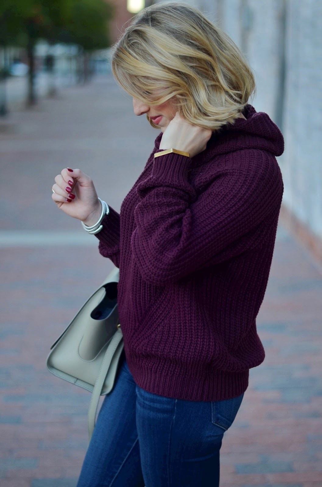 I just got this sweater in grey and love it! It's so comfy and I think I need the wine color you have!