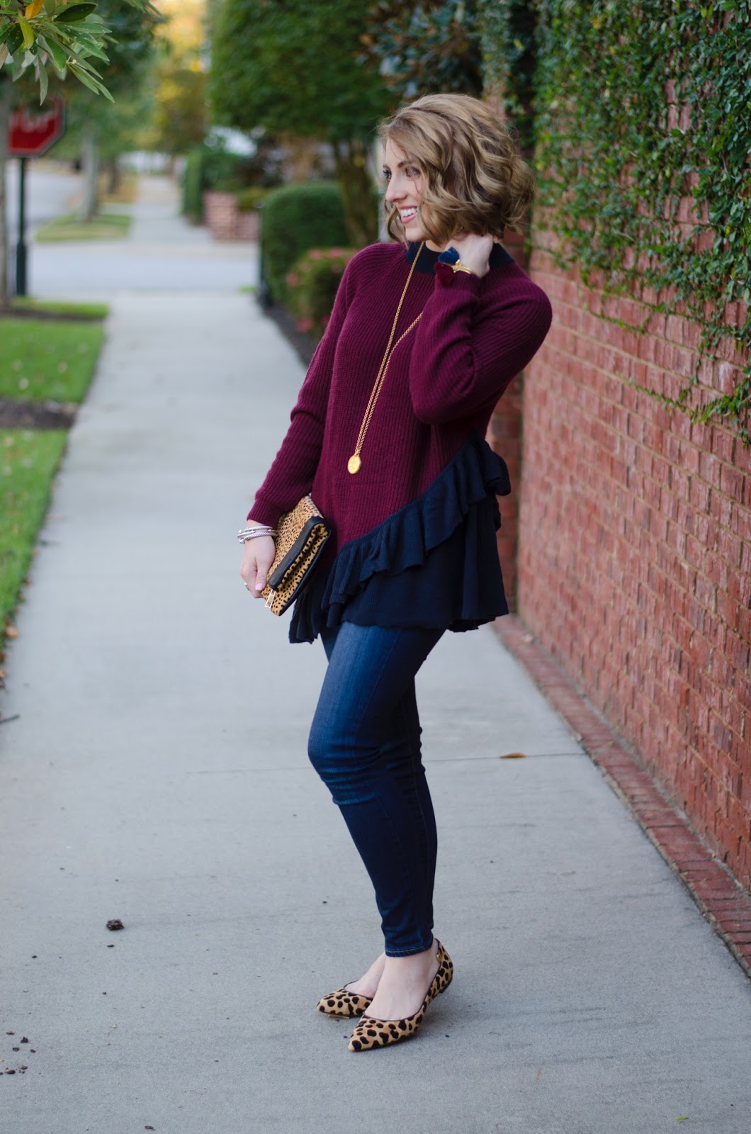 I'm dying over the color combo & the ruffles, and what a great price! You're killing it with the fall pieces this year 🙂
