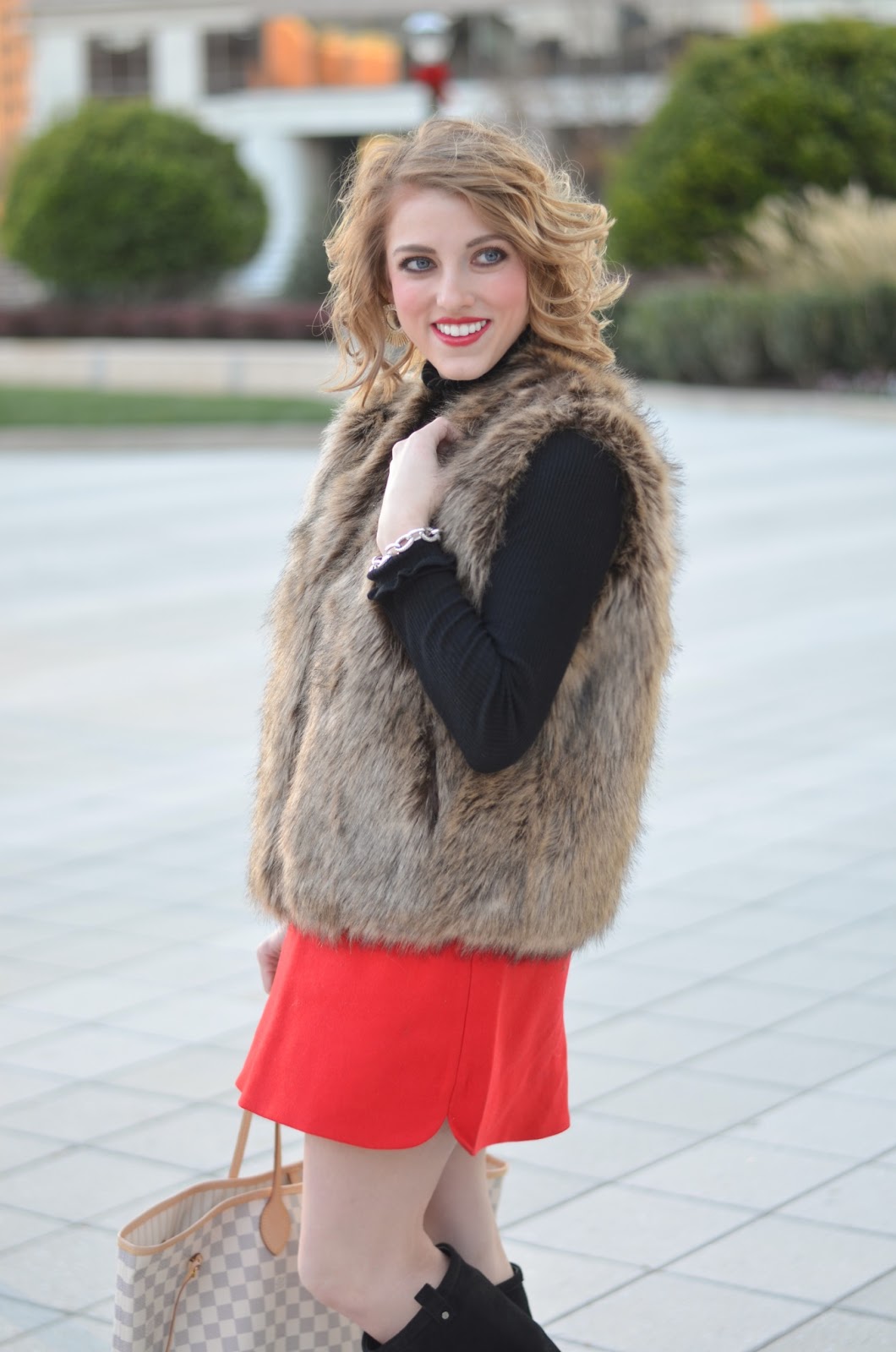 I adore this fur vest! The look is so cute!