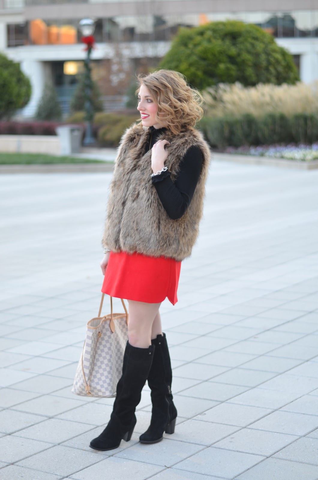 I love the fur! I'd really love to get a vest like this, but not sure I could pull it off! You're so festive.