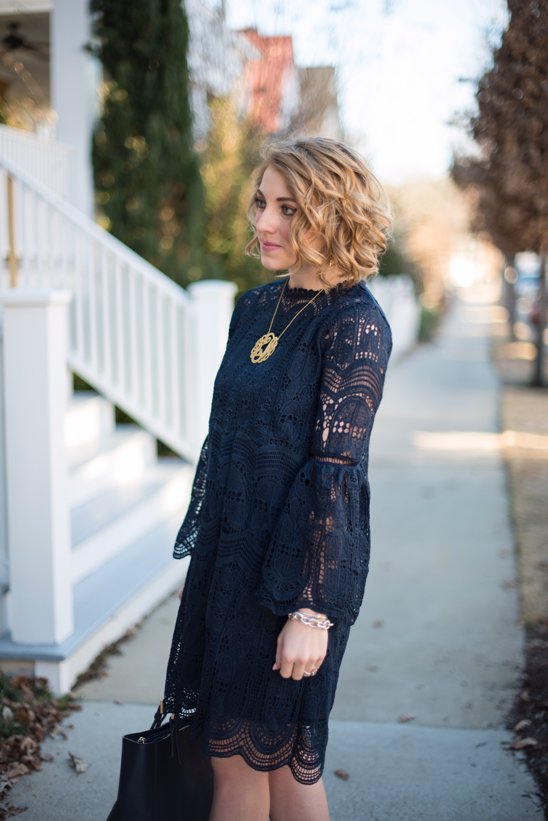 Hello and happy Wednesday! Today’s post is featuring this gorgeous crochet dress. I have found that I tend to keep more navy dresses in my closet than any other color. I like to think of it as a LND (little navy dress). I am more than obsessed with the gorgeous sleeves of this one. It’s only $59! I was sad to see that the navy appears to be sold out, however there is a good chance it could be re-stocked! It also comes in white…how perfect for a bride-to-be! I also want to mention that it does run large. I’m wearing a size small, but still had to have mine taken in to fit as a smaller size. If you love this dress in navy, then be sure to check out this one as well! It’s sooo gorgeous! I wore it in white for Easter last year and am so excited to see that it has come back for this year.