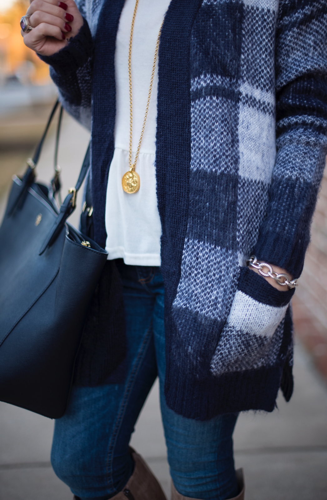 Navy Plaid Cardigan