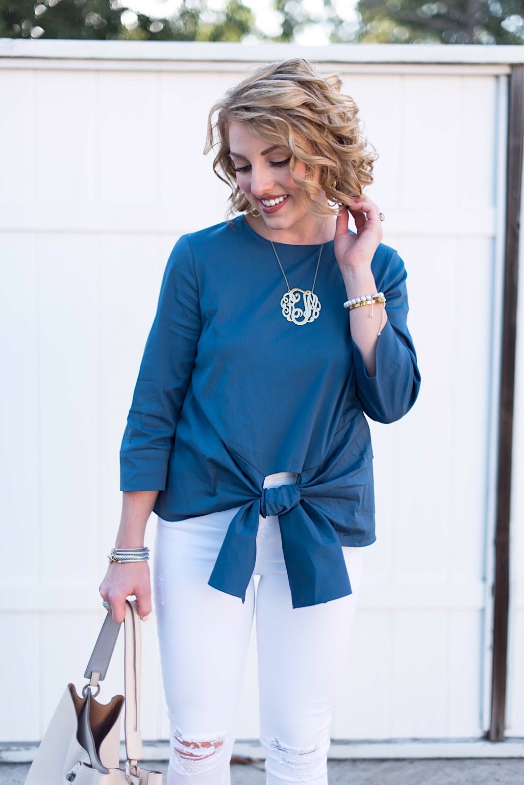 And as for my top, yes I did add another tie-front top to my closet and no, I still don’t think that I have too many lol. I think this one is so flattering and is by far my favorite. I love having one with a longer sleeve now. It will be a great transition piece! It also comes in white which I’m thinking about grabbing up as well simply because I love it so much. Oh, and it’s under $70 and runs TTS 🙂