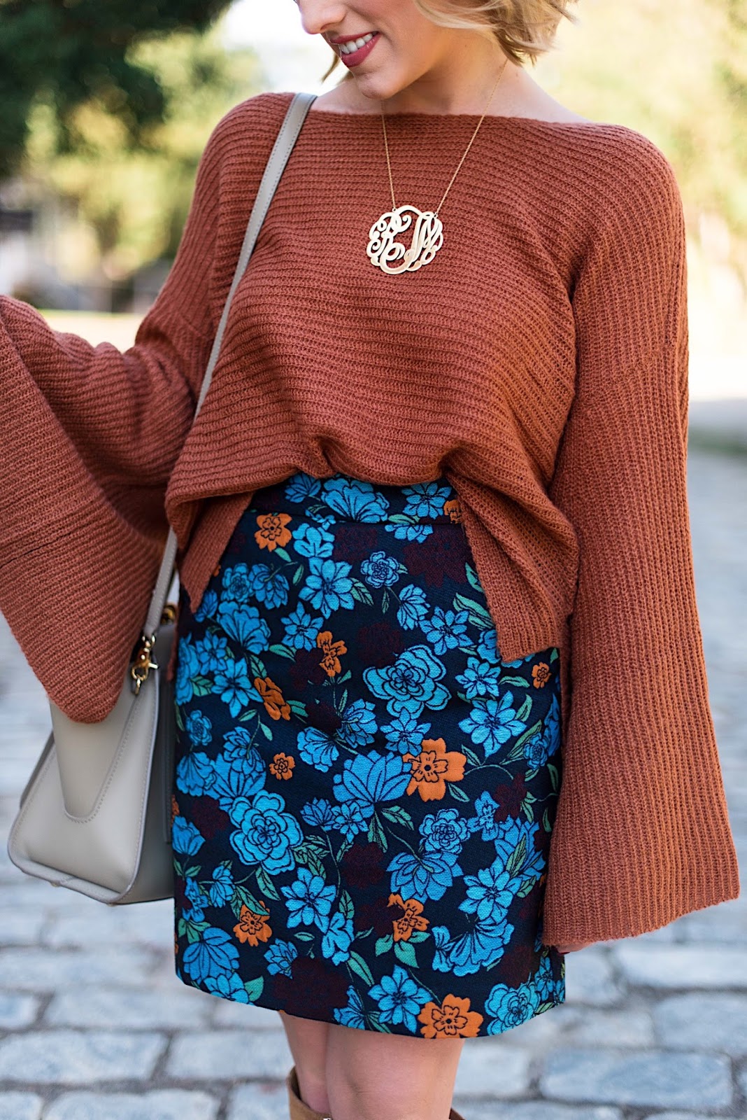 I also get giddy with excitement to bring out some of my favorite fall looks. This look I am featuring today is one that I have been so excited to share. I have recently become obsessed with pairing slouchy sweaters with skirts. This bell sleeve sweater is only $39 and also comes in a gorgeous lilac! However, I’m a bit biased towards the burnt orange color…it’s one of my favorites for fall! This sweater also looks adorable with denim and leopard shoes or paired with a leopard scarf. I love the bold statement that this skirt and sweater paired together makes. And one last thing to mention: my ZAC Zac Posen bag is currently 25% off with the code FRIENDS. It sold out during the Shopbop sale last week, because it’s seriously such an amazing bag. But I was able to find it on sale somewhere else, and it will be on sale through October 9th.