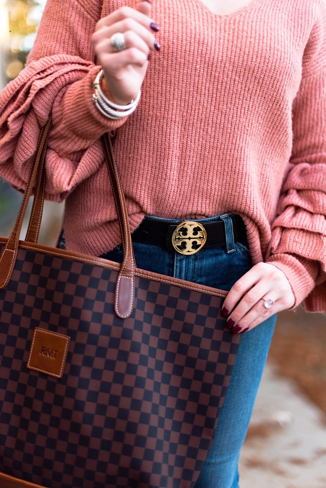 Another thing that I want to highlight in today’s post is my belt. This Tory Burch logo belt has been a go-to of mine ever since I purchased it a few months back. It is seriously the best accessory ever! I find myself wearing it multiple times a week. The best part is that it’s reversible, one side being brown and the other being black. It is hands down the best accessory. I say all of this, because it would be an amazing gift! I know several people on my list who would love it. If you’re looking for a nice gift for her that she will get tons of use out of, I can promise this would be a great option.