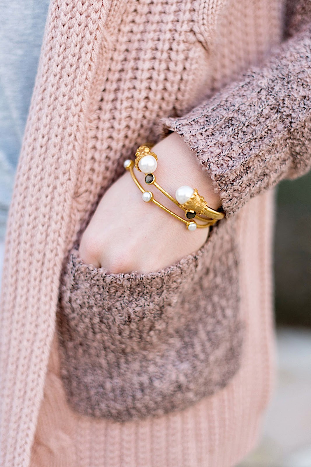 I am completely over winter, and I’m sure I’m not the only one. One way to dress for winter without feeling so…”winter” is to style your white jeans with cozy sweaters and cardigans. This way, you’re mixing in some winter pieces for warmth with crisp, white, just to remind you that spring will be here before we know it. Throw on a pair of boots or mules and you’re good to go! I honestly love wearing my white jeans all year round. About this time of year is when I especially love pulling them out, and I enjoy them all spring and summer long. The pair I’m wearing here is my all-time favorite mid-rise pair. Yes, I have a favorite high-rise pair as well, but this pair I have probably washed over 100 times and they go back to being good as new each time. They’re soft, stretchy and absolutely amazing! I may order a new pair for this spring.