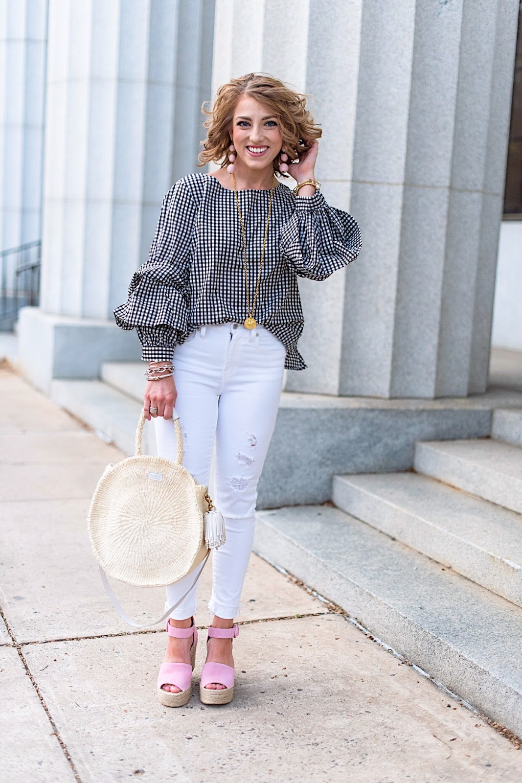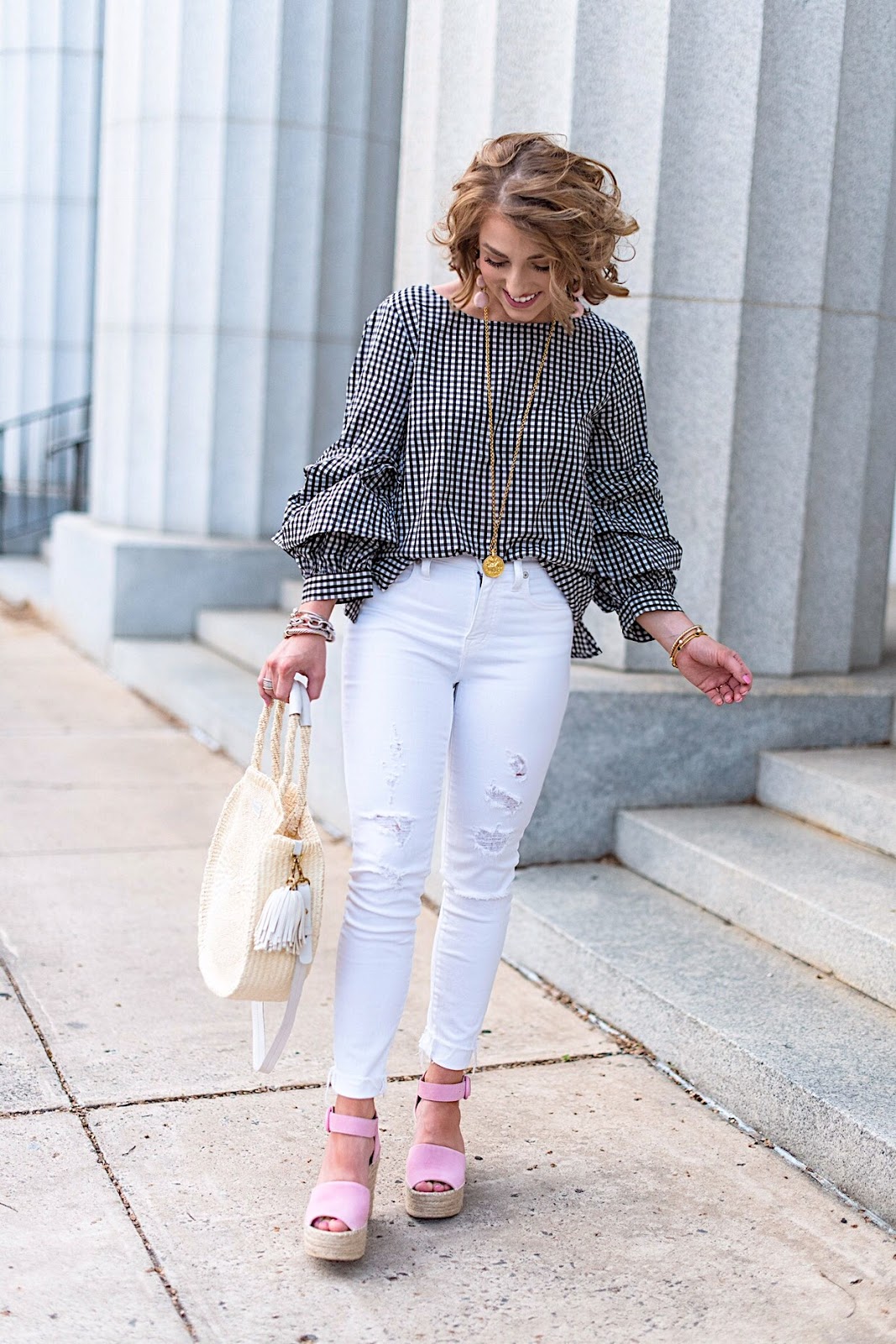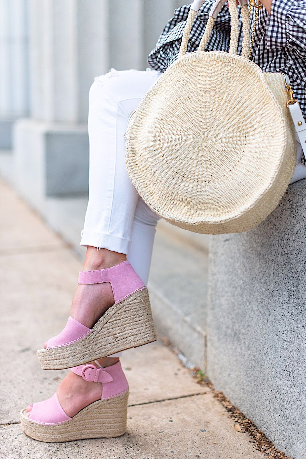 Black Gingham Top + Pink Wedges - Click through to see the full post on Something Delightful Blog