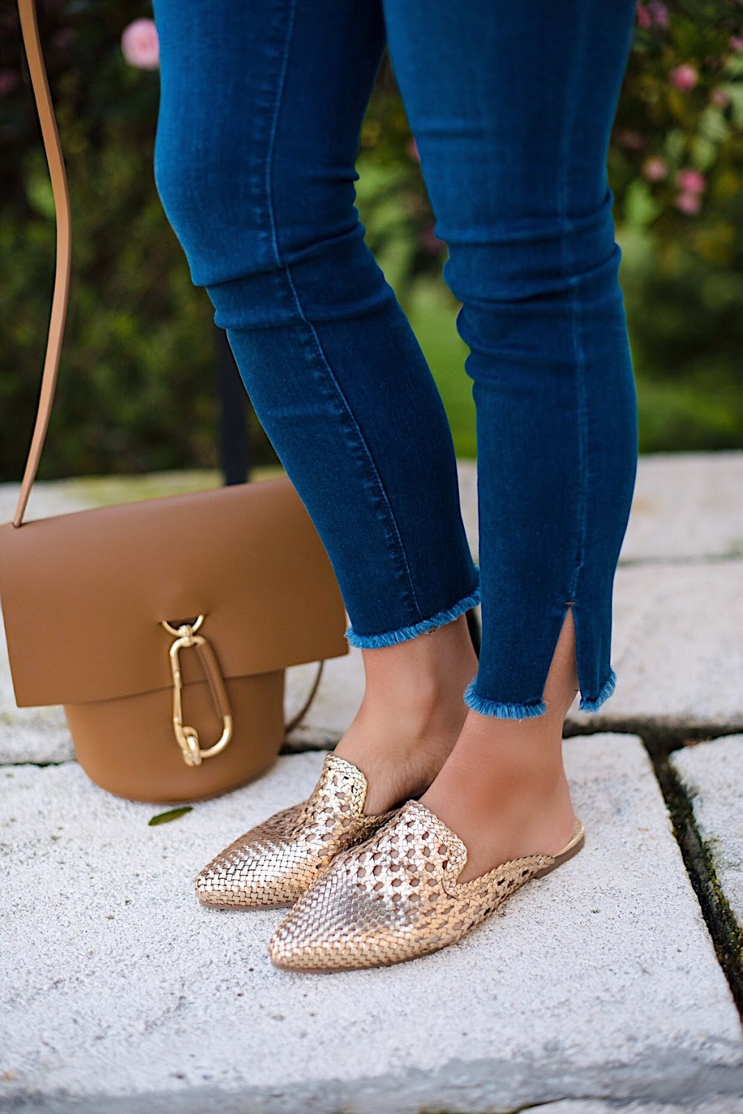 Y’all are also very aware of my love for pink and gold. Of course gold accessories were my go-to with this look. These gold disk earrings from Lisi Lerch are to die for! I want to get them in turquoise and/or pink as well. Lisi Lerch is quickly becoming my very favorite earring brand. Today they are celebrating turning 17!!! So, you can save 17% off your entire purchase today only. Happy Birthday, Lisi Lerch 🙂 The other gold accessory I decided to wear with this look are these mules. They’re currently up to 25% off with the code GOBIG18.