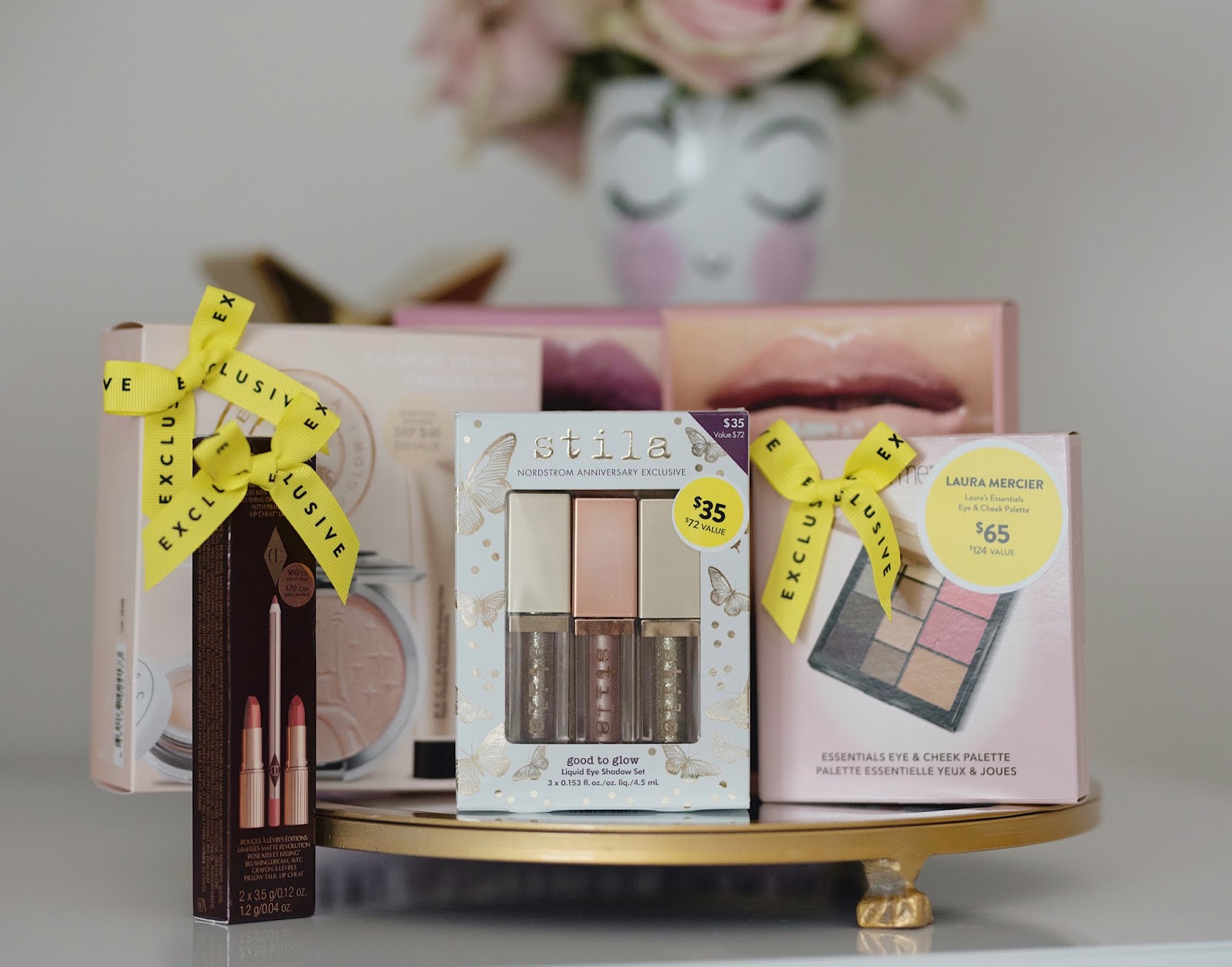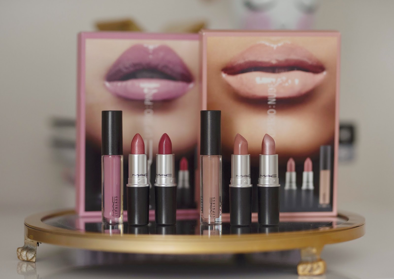 MAC Pink Lip Set // MAC Nude Lip Set // Becca Parasian Glow Set // Charlotte Tilbury Lip Set // Still Glitter Eyeshadow Set // Laura Mercier Eye and Cheek Palette