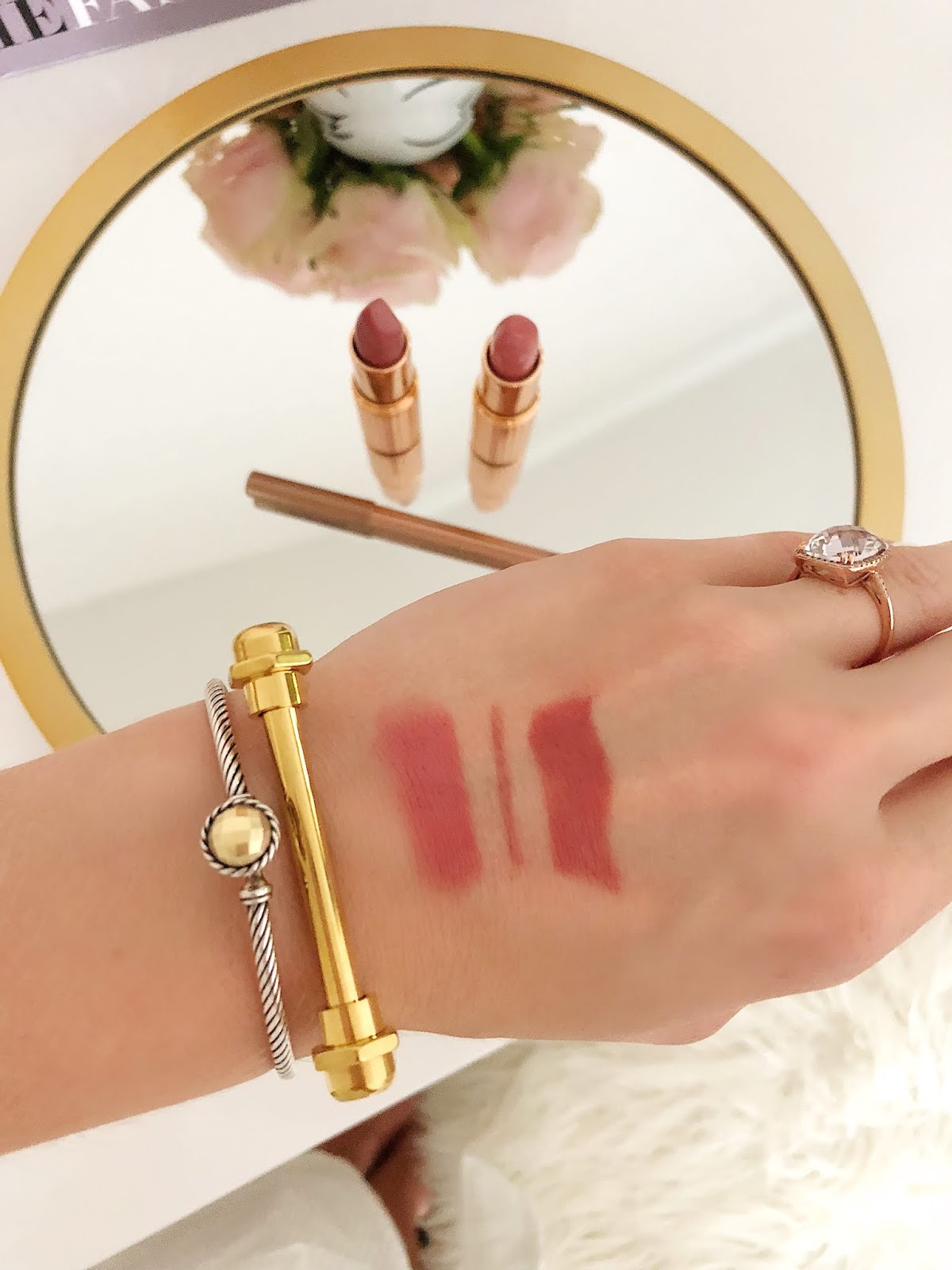 Another brand of lip products I love is Charlotte Tilbury. When I’m asked about what lip color I’m wearing, 90% of the time I will say that the lip liner I’m wearing is Charlotte Tilbury “Pillow Talk”. Well, that’s the liner that is included in this NSale set this year. You also receive TWO full sized lip colors, “Blushing Dream” and “Rose Kiss”. They are both absolutely beautiful and give you a warm, pinky, nude lip. They also mix so well together. This combo is what I was wearing in this post. Normally, one lip cheat liner costs $22 and each lipstick costs $34. But you get two full sized lip colors and a full sized liner for $60 in this set.