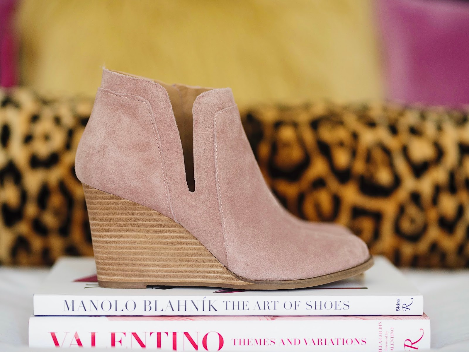 The Yabba Wedge Bootie by Lucky Brand is simply amazing! I love these sooooo much. Like words can’t even describe how much haha. I have never had a wedge heel bootie, and I’m officially in love with these. Something about the wedge heel adds the cutest touch. I opted to purchase these in the blush/pink color. They’re absolutely the cutest! I love pairing them with dresses, skirts and jeans. This style comes in a handful of colors, but again has been a very popular shoe. Sizes have sold out so quickly, so if you see yours, grab it up! They’re on sale for $86 (reg. $130). I wish I had gotten these in brown as well.