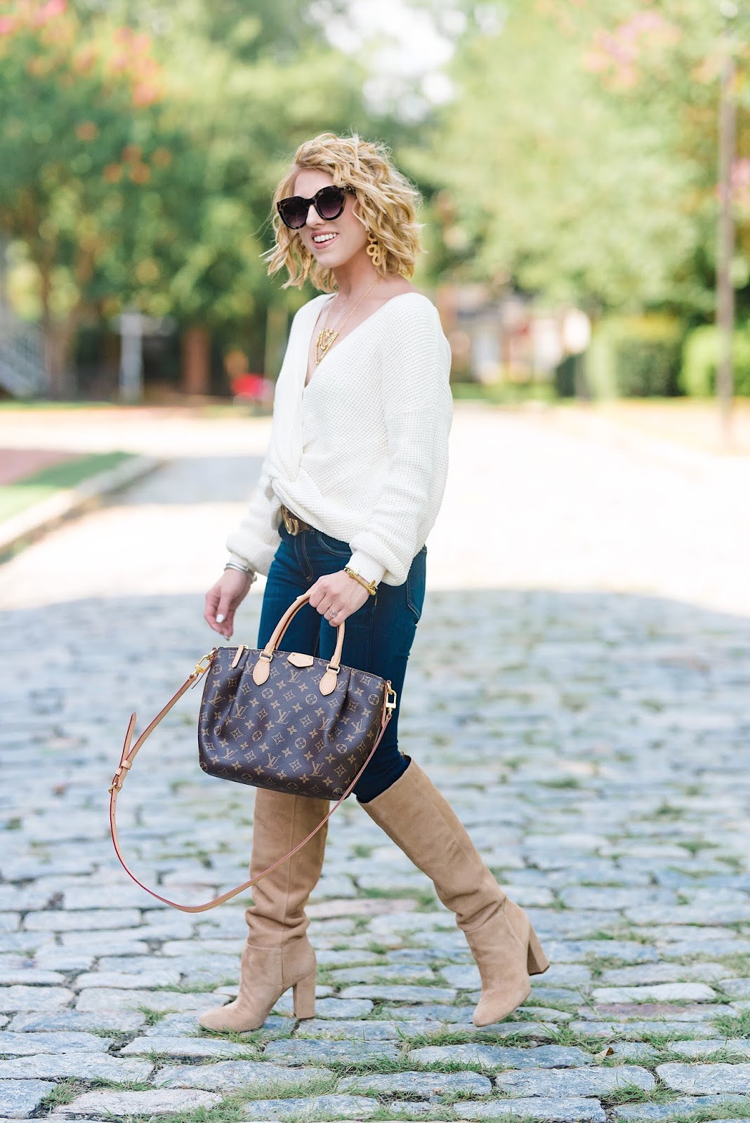 I also have to mention my boots. These are the Sam Edelman Caprice Knee High Boots. I love them SO much. They are also included in the NSale and are probably my favorite shoe purchase. This color is selling out very quickly, but they are still available in black, which I may end up purchasing as well 🙂