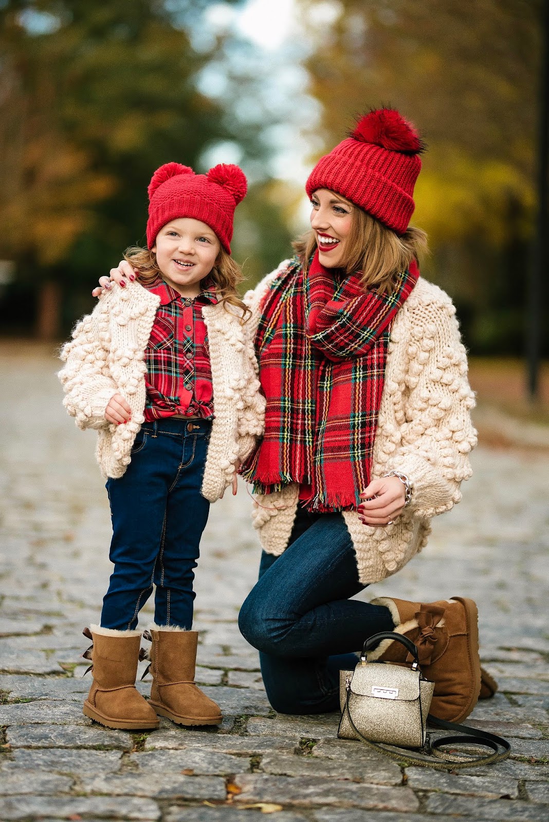 Mommy & Me in Pom Pom Heart Cardigans Paired with Plaid + Last Minute Gifts on Prime