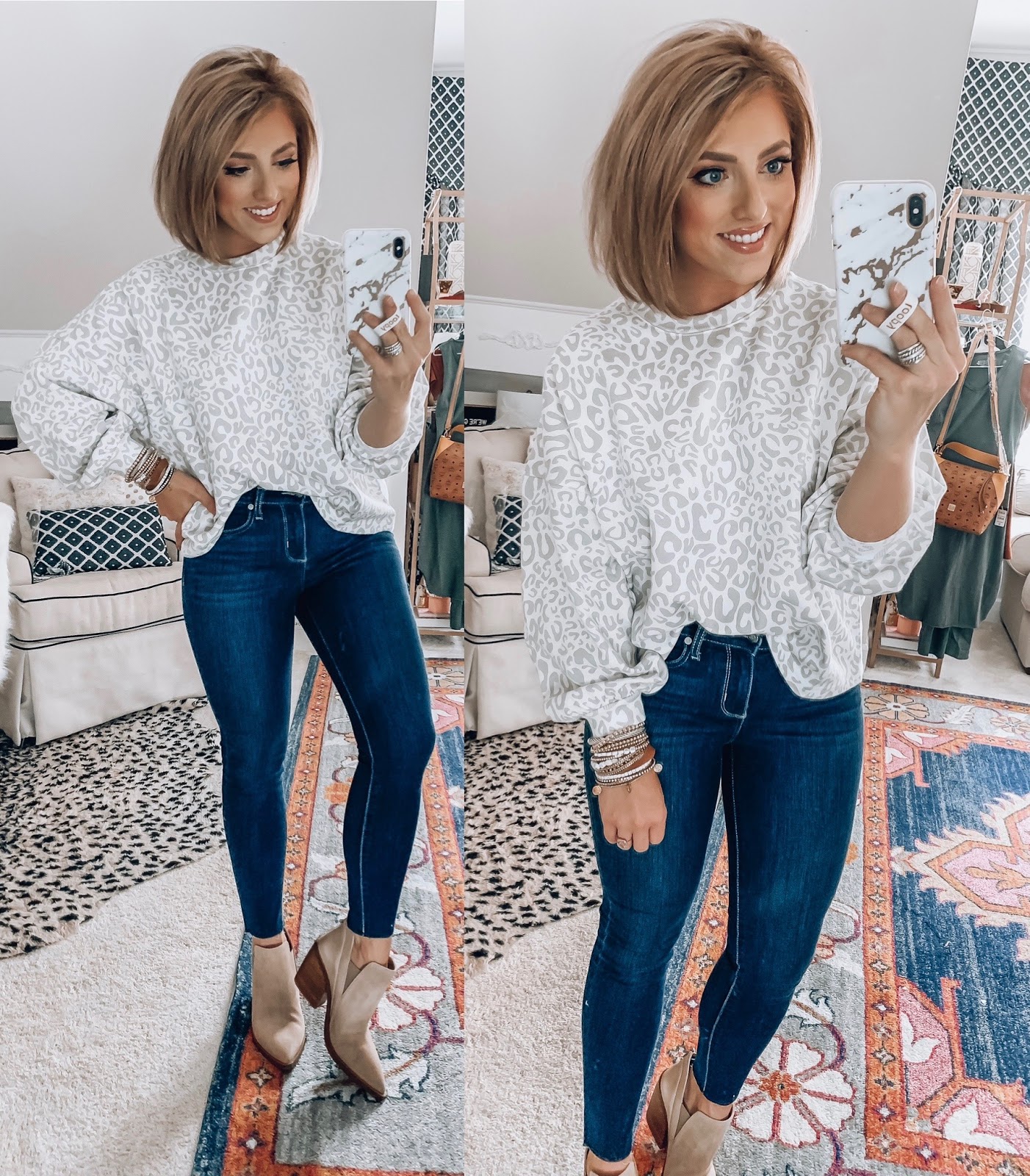 $13 Leopard Print Sweatshirt // $23 Jeans // Booties (also love these from Walmart)
