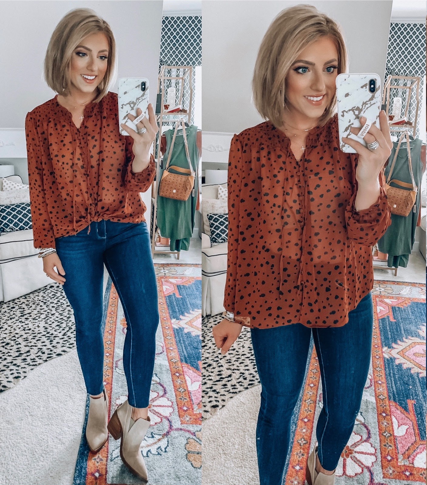 $13 Blouse // $23 Jeans // Booties (also love these from Walmart)