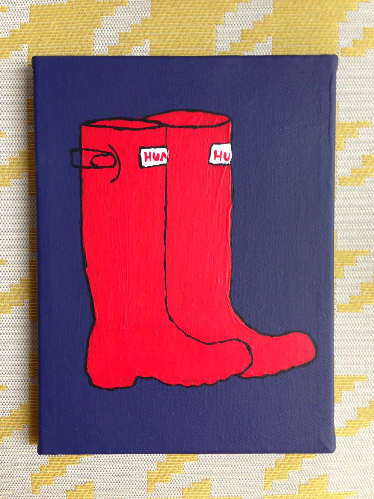 My very favorite rainy day activity, or any time I have some free time activity, is to paint canvases. I simply paint whatever I feel inspired by at the moment. I also like to write down all my ideas (possible another idea for a journal use?), and when I find the time, I see if any of these still spark my interest to paint them. I paint just for the enjoyment of it. It’s a great way to express yourself and what is inspiring you! I love to paint items by my favorite brands. I think that the reason I enjoy doing this so much is because even though they’re a very “loose interpretation” of the item, they’re simple and unique in their own way.