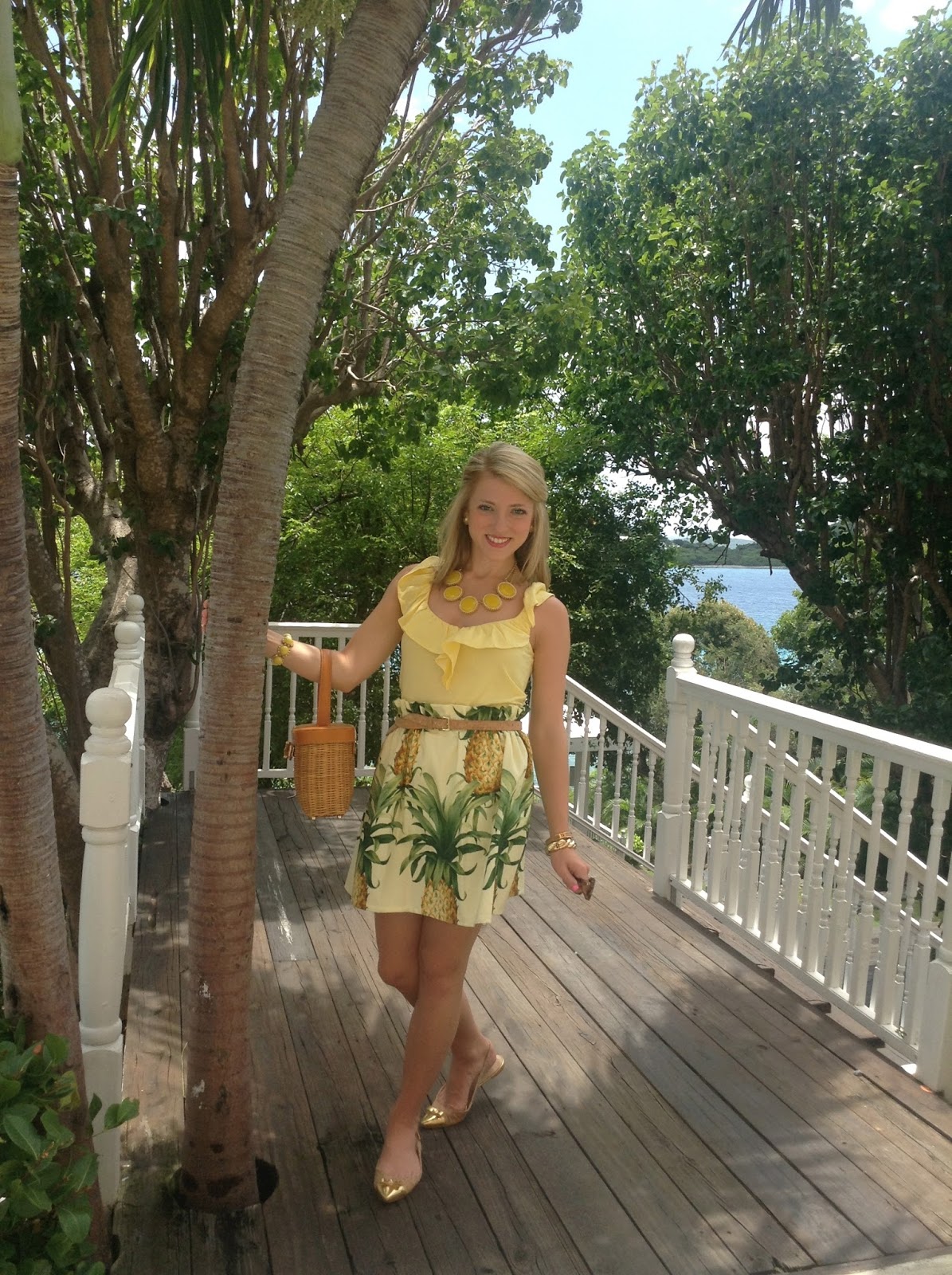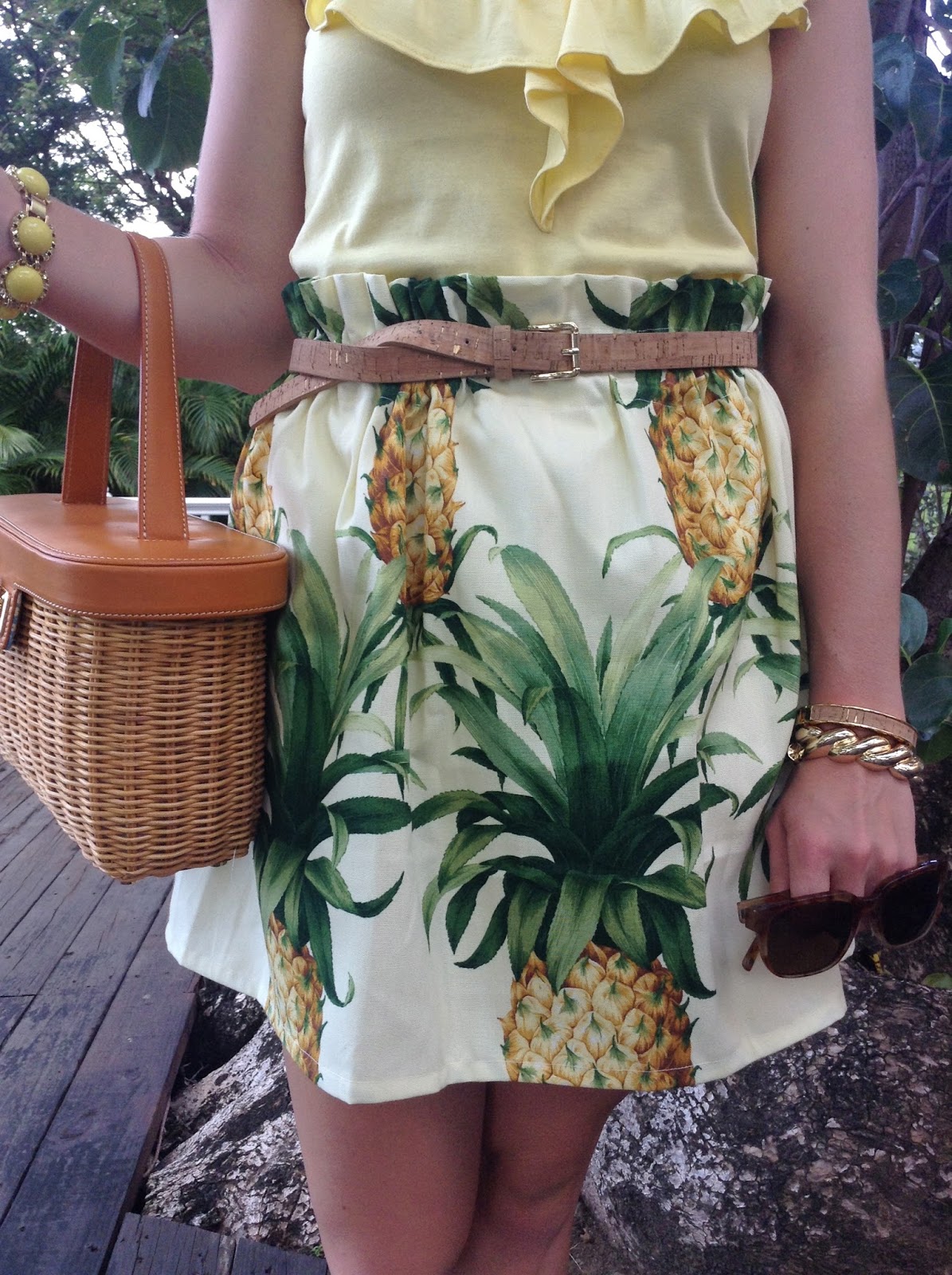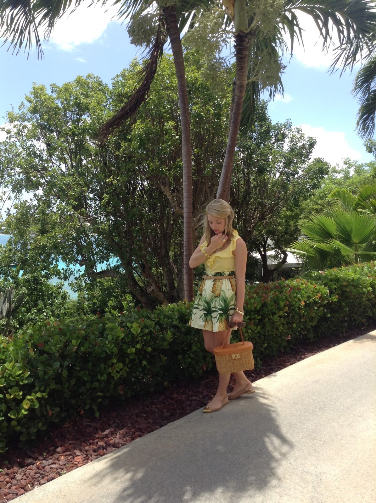 That pineapple skirt is to die for! I love the way you paired it. Hope you are enjoying St. Thomas!
